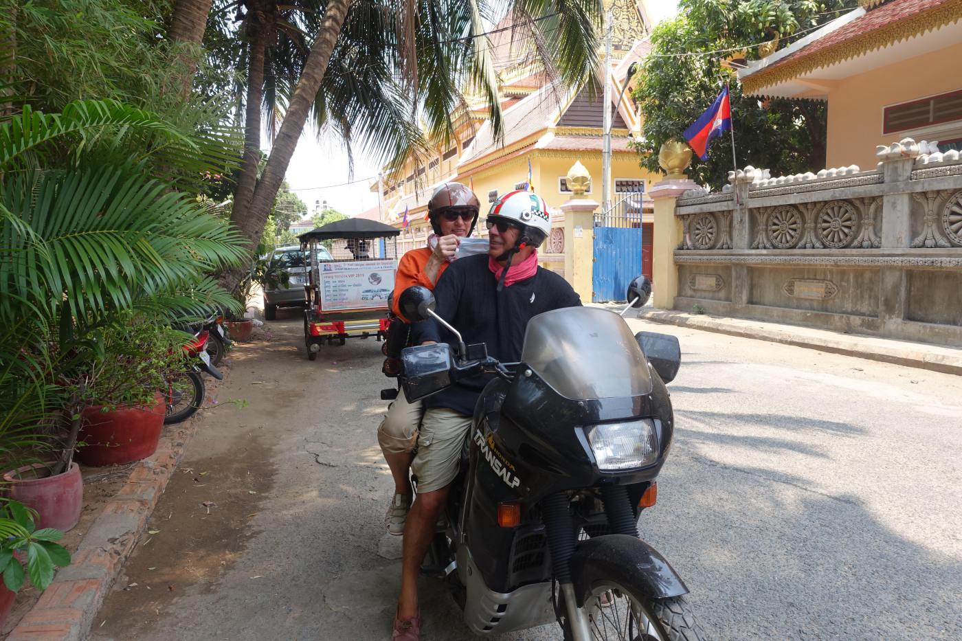 Petite visite de Phnom Penh avec croisière privée sur le Mekong, appelé au Vietnam le fleuve des neuf dragons. Nous sommes très rapidement détournés par la police fluviale pour cause de festivités royales. A la veille du nouvel an, le palais royal est dans tous ses états. Quelques prières au Wat Phnom afin de de débuter la semaine sous les meilleurs auspices.